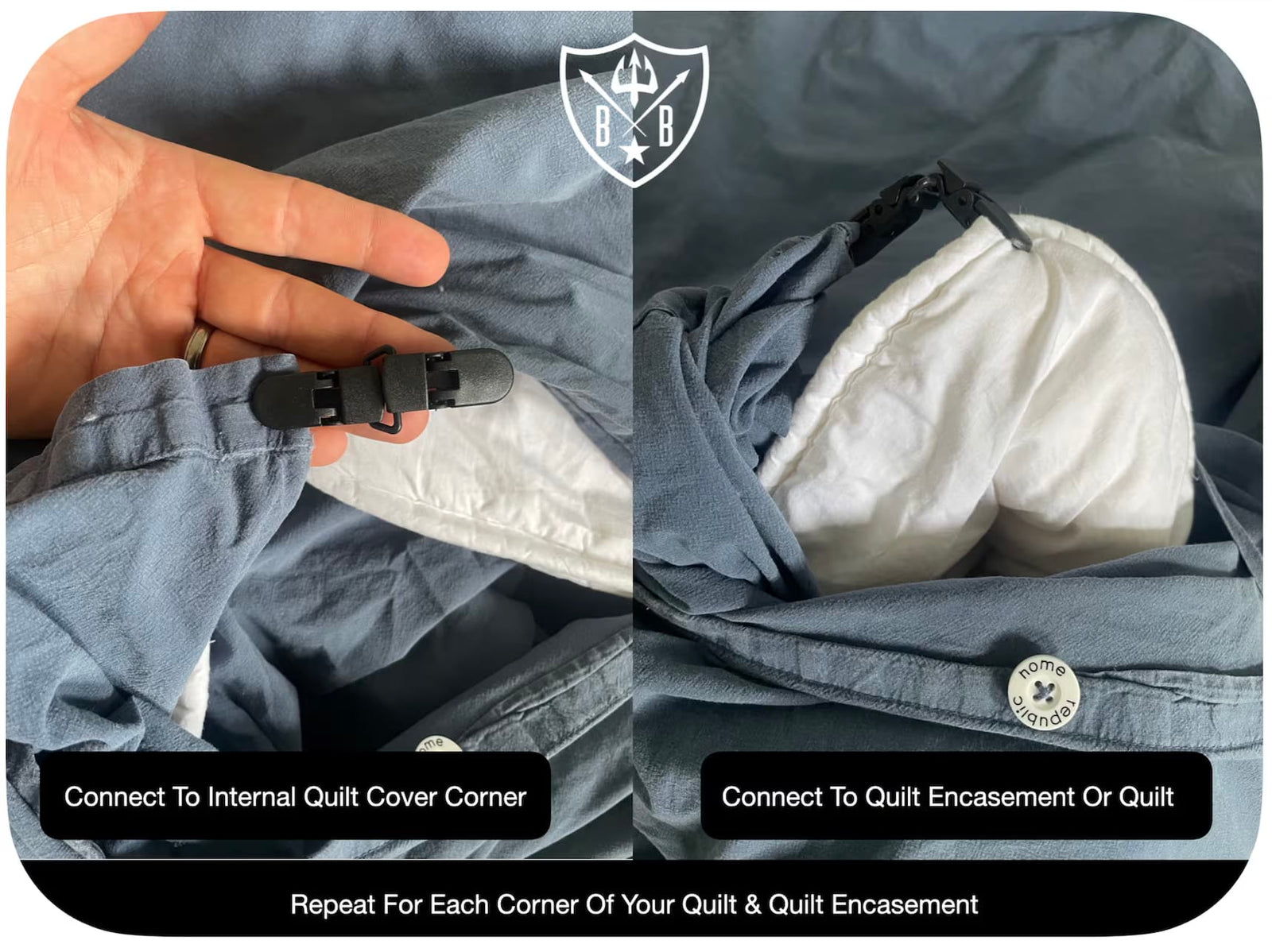 Trusted globally, Super Clamps hold your quilt corners and quilt cover firmly, delivering a perfectly anchored, cozy sleep experience without using anything sharp.